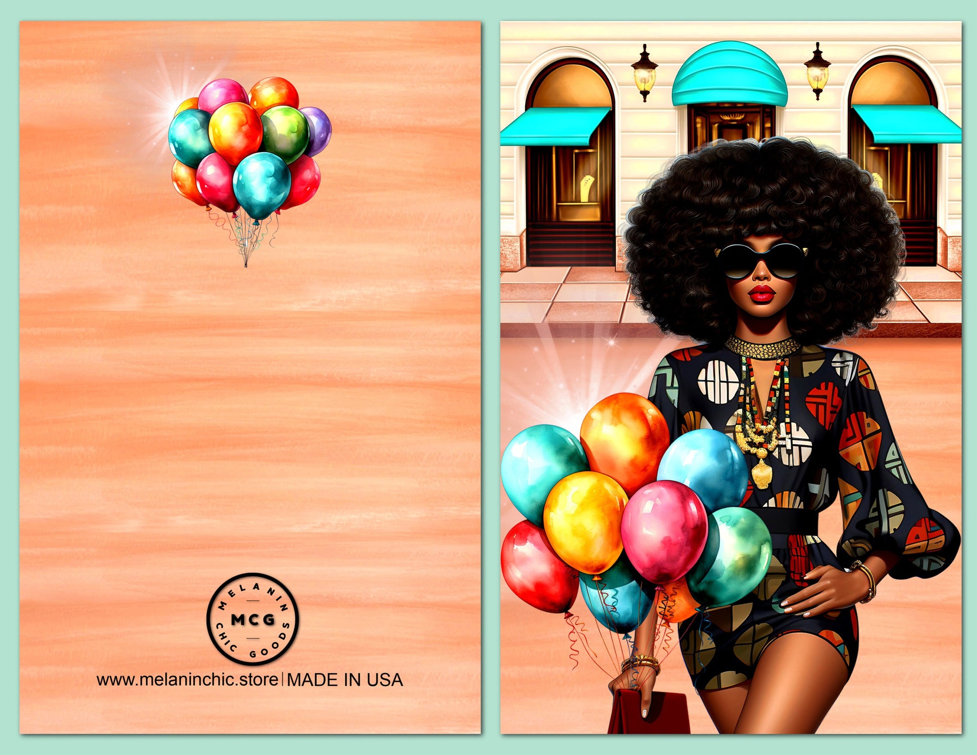 Say Happy Birthday without sacrificing style. Our African American greeting cards are a representation of who you are and how your feeling at the moment. Our cards are blank on the inside, so that you can write a personal message from the heart. Our greeting cards come as (1), (6) or (12) Count. If you would like different styles and tones; please message me the amount for each style and tone, and include your order# that you will receive when you check out. You will have the option to enter personalization information for most cards. Our cards are Full Size. The cards measure 5.5 x 8.5 folded, and 8.5 x 11 inches unfolded. Most of our cards are printed on gloss cardstock, and some are printed on linen cardstock. Our cards are great for Birthdays, Christmas, Anniversaries, Mother's Day, Father's Day, Graduation, Valentine's Day, and many more celebrations. Our greeting cards are great gifts to give to your Mother's, Father's, Brothers, Sisters, Children, Grandchildren, Grandparents,Friends and Co-workers. Give the gift of style and representation for that special event.