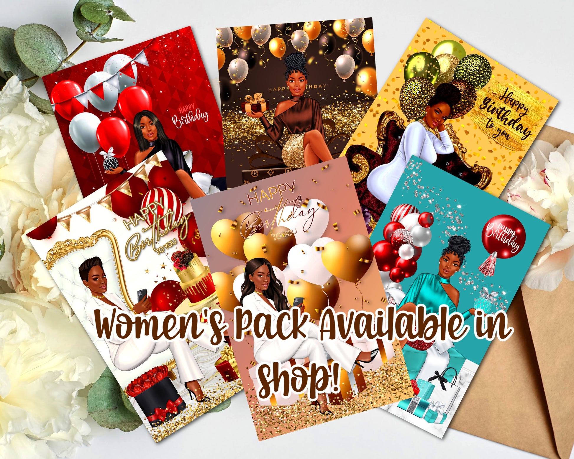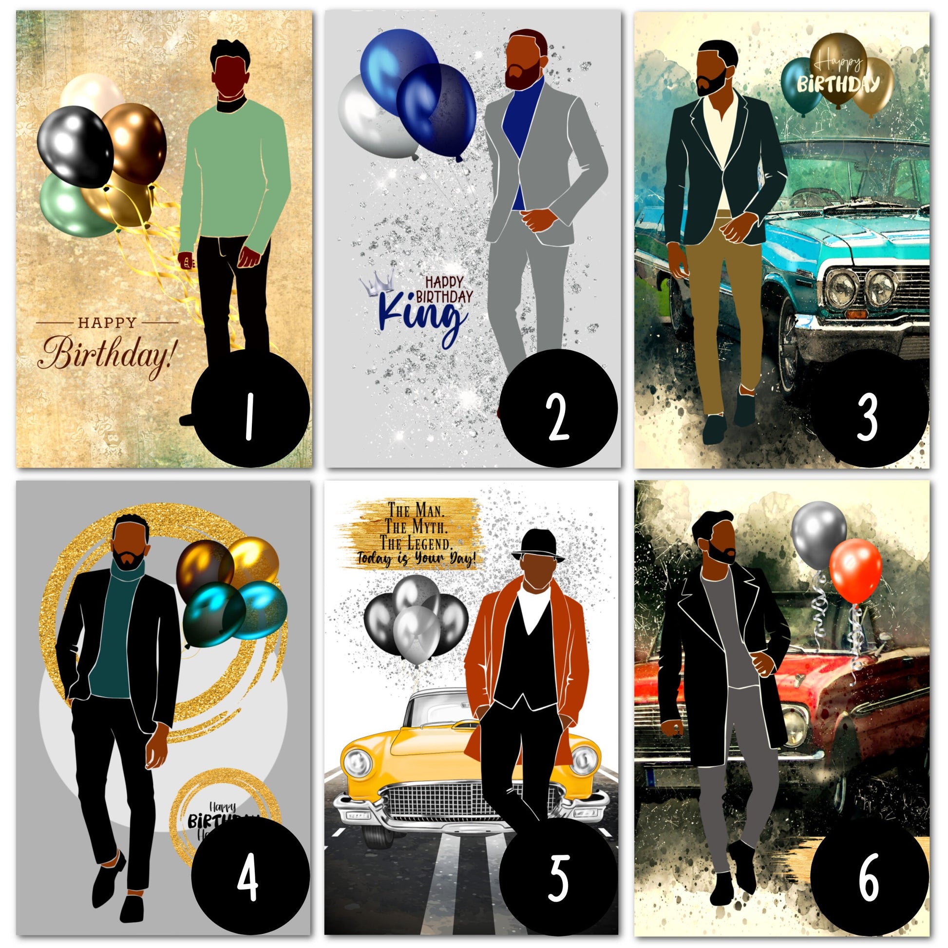 Say Happy Birthday without sacrificing style. Our African American greeting cards are a representation of who you are and how your feeling at the moment. Our cards are blank on the inside, so that you can write a personal message from the heart. Our greeting cards come as (1), (6) or (12) Count. If you would like different styles and tones; please message me the amount for each style and tone, and include your order# that you will receive when you check out. You will have the option to enter personalization information for most cards. Our cards are Full Size. The cards measure 5.5 x 8.5 folded, and 8.5 x 11 inches unfolded. Most of our cards are printed on gloss cardstock, and some are printed on linen cardstock. Our cards are great for Birthdays, Christmas, Anniversaries, Mother's Day, Father's Day, Graduation, Valentine's Day, and many more celebrations. Our greeting cards are great gifts to give to your Mother's, Father's, Brothers, Sisters, Children, Grandchildren, Grandparents,Friends and Co-workers. Give the gift of style and representation for that speacial event.