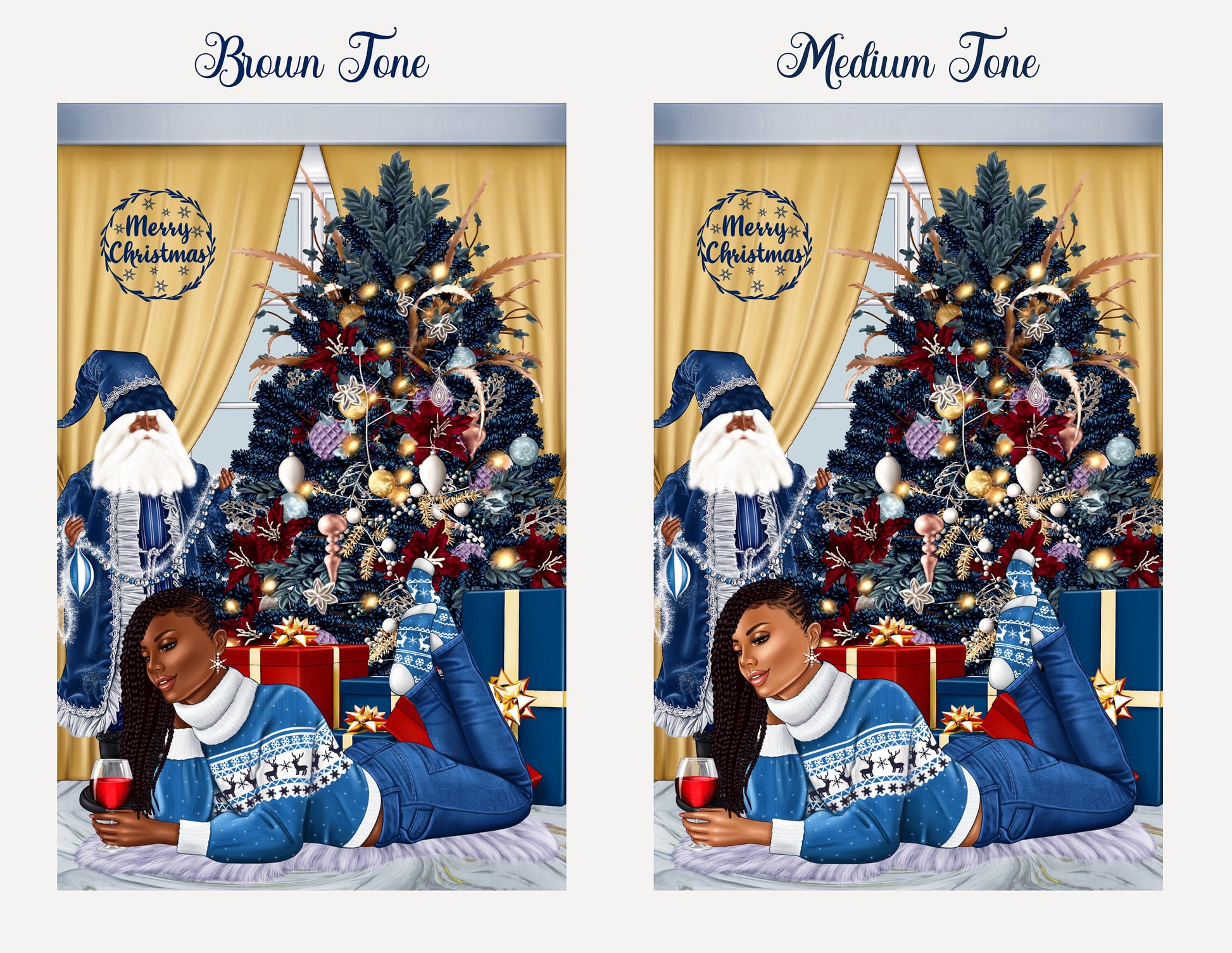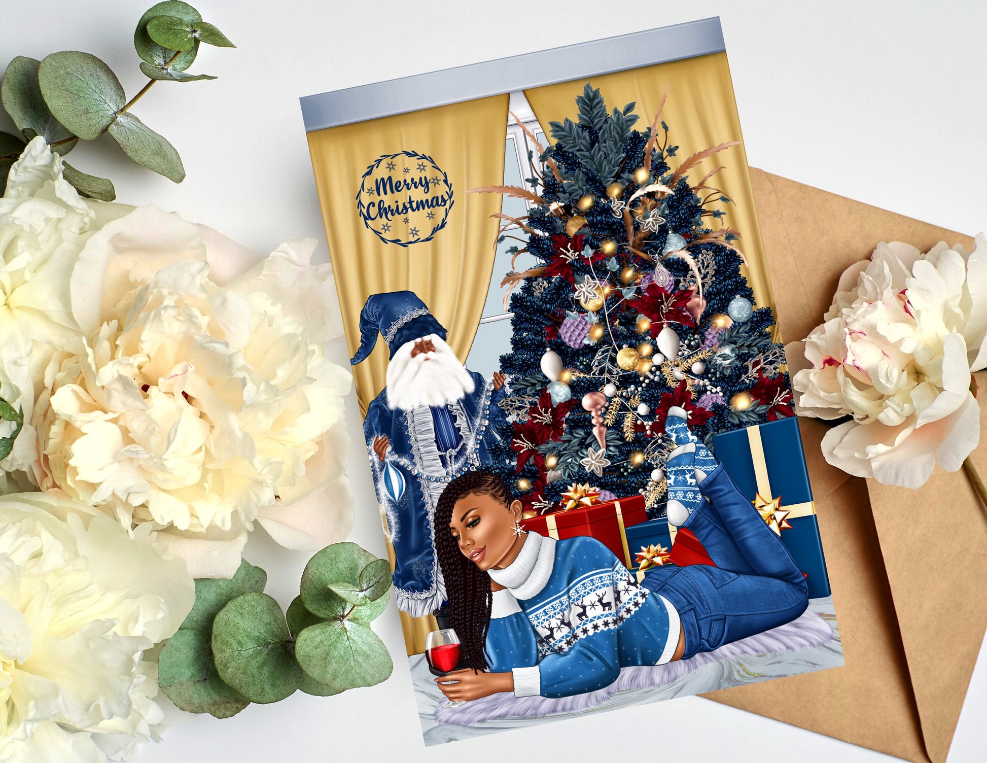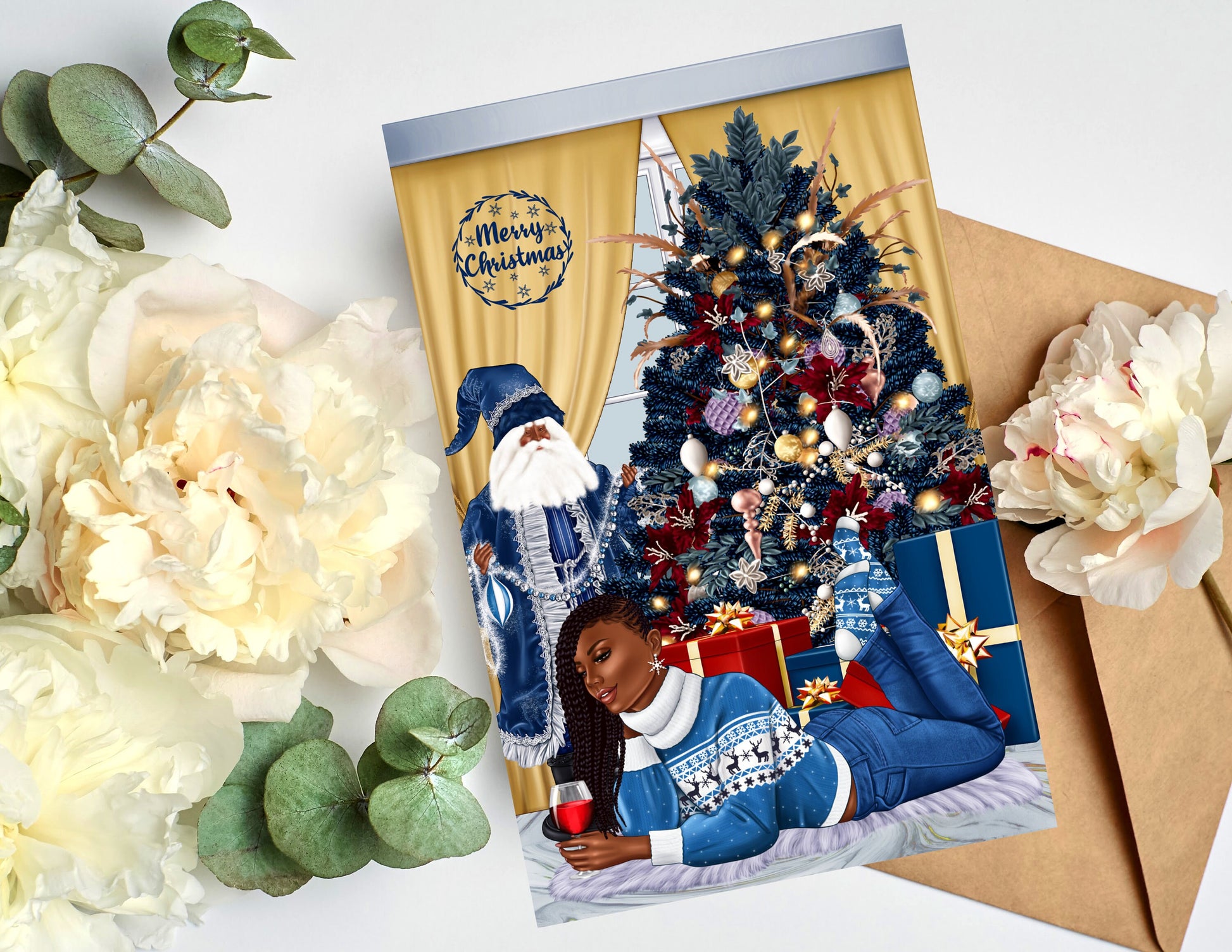 Say Merry Christmas without sacrificing style. Our African American greeting cards are a representation of who you are and how your feeling at the moment. Our cards are blank on the inside, so that you can write a personal message from the heart. Our greeting cards come as (1), (6) or (12) Count. If you would like different styles and tones; please message me the amount for each style and tone, and include your order# that you will receive when you check out. You will have the option to enter personalization information for most cards. Our cards are Full Size. The cards measure 5.5 x 8.5 folded, and 8.5 x 11 inches unfolded. Most of our cards are printed on gloss cardstock, and some are printed on linen cardstock. Our cards are great for Birthdays, Christmas, Anniversaries, Mother's Day, Father's Day, Graduation, Valentine's Day, and many more celebrations. Our greeting cards are great gifts to give to your Mother's, Father's, Brothers, Sisters, Children, Grandchildren, Grandparents,Friends and Co-workers. Give the gift of style and representation for that speacial event.