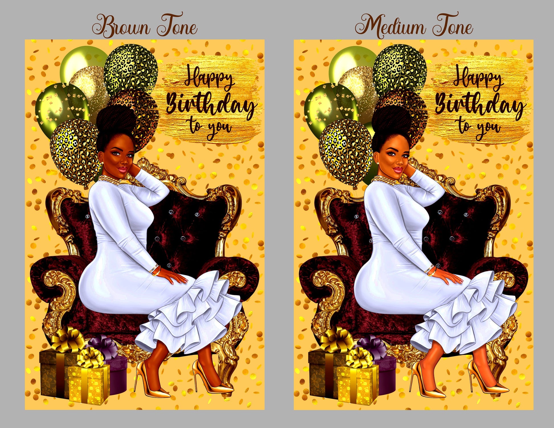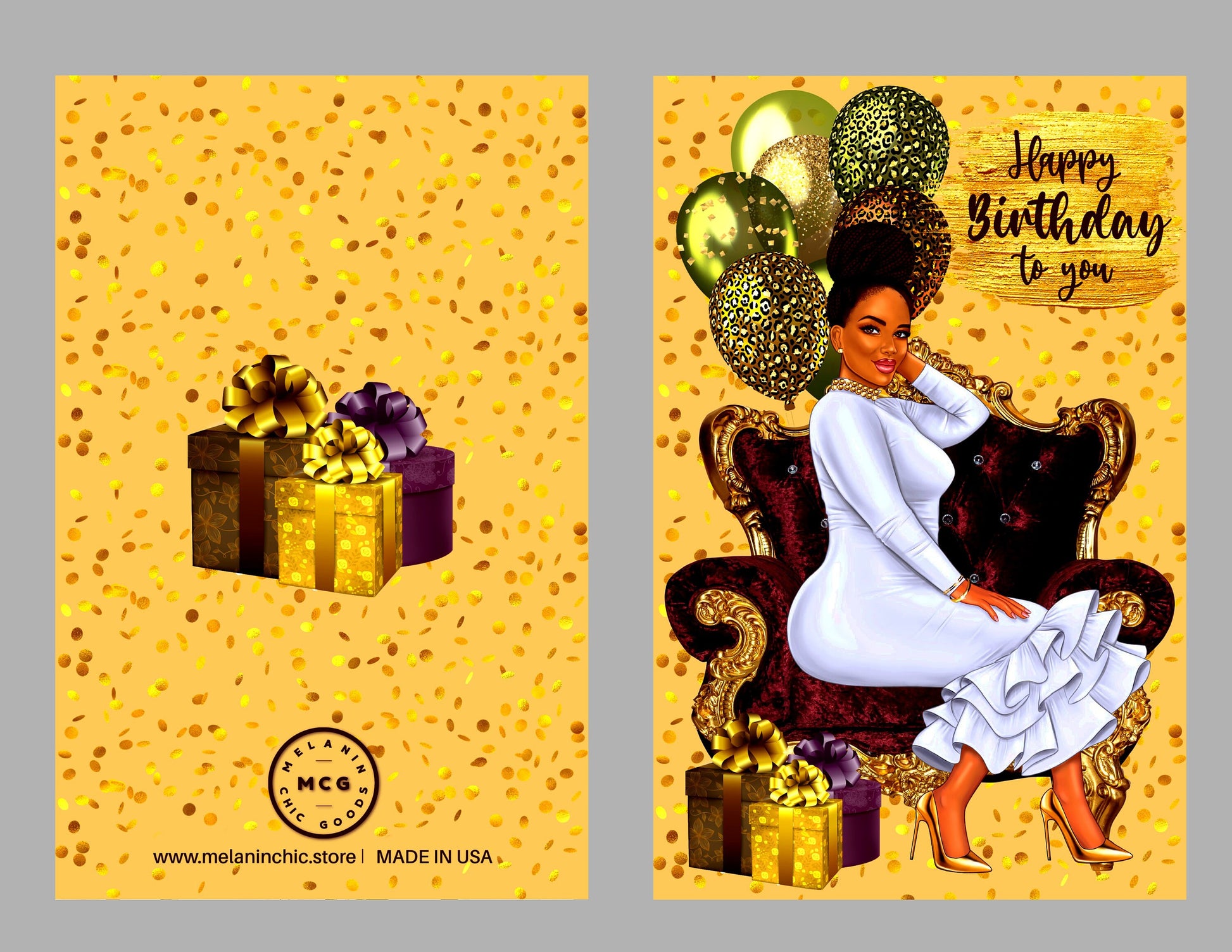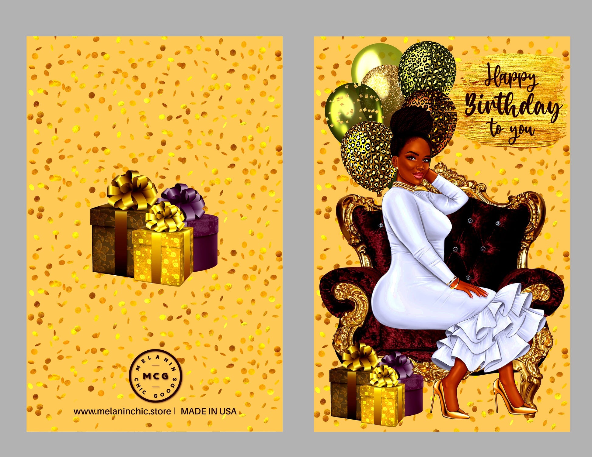 Say Happy Birthday without sacrificing style. Our African American greeting cards are a representation of who you are and how your feeling at the moment. Our cards are blank on the inside, so that you can write a personal message from the heart. Our greeting cards come as (1), (6) or (12) Count. If you would like different styles and tones; please message me the amount for each style and tone, and include your order# that you will receive when you check out. You will have the option to enter personalization information for most cards. Our cards are Full Size. The cards measure 5.5 x 8.5 folded, and 8.5 x 11 inches unfolded. Most of our cards are printed on gloss cardstock, and some are printed on linen cardstock. Our cards are great for Birthdays, Christmas, Anniversaries, Mother's Day, Father's Day, Graduation, Valentine's Day, and many more celebrations. Our greeting cards are great gifts to give to your Mother's, Father's, Brothers, Sisters, Children, Grandchildren, Grandparents,Friends and Co-workers. Give the gift of style and representation for that speacial event.