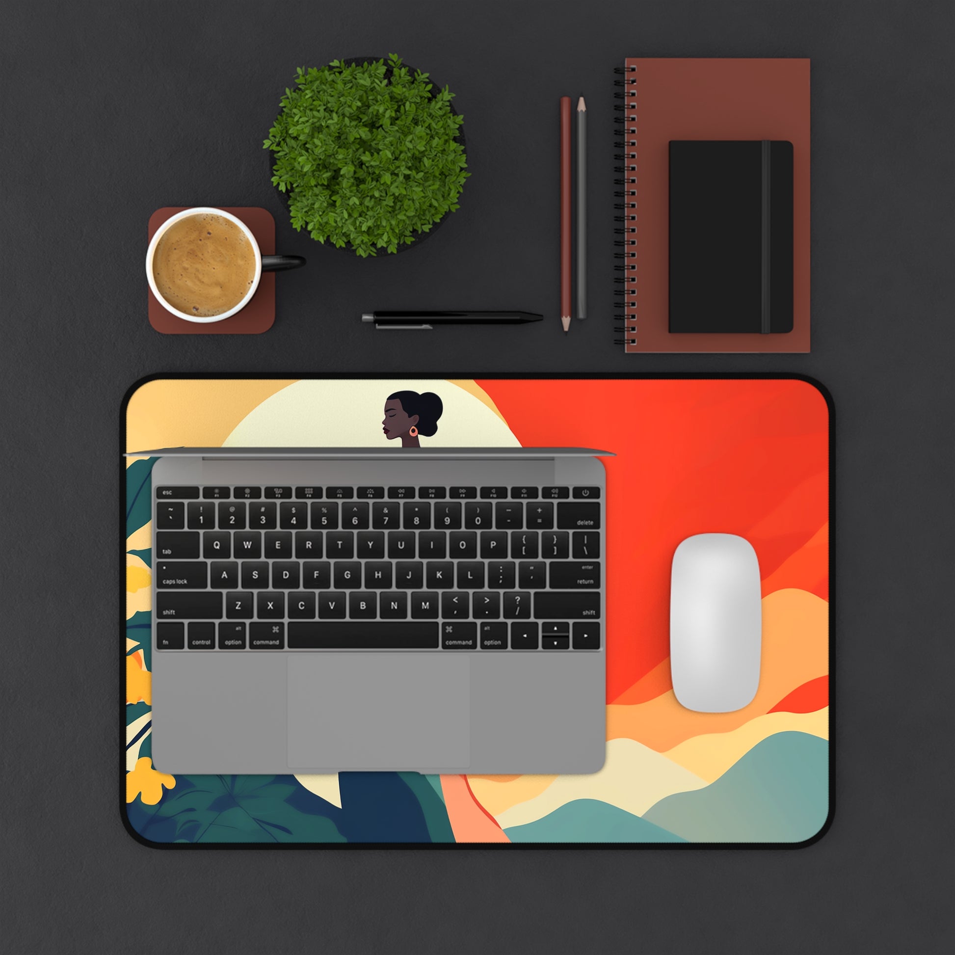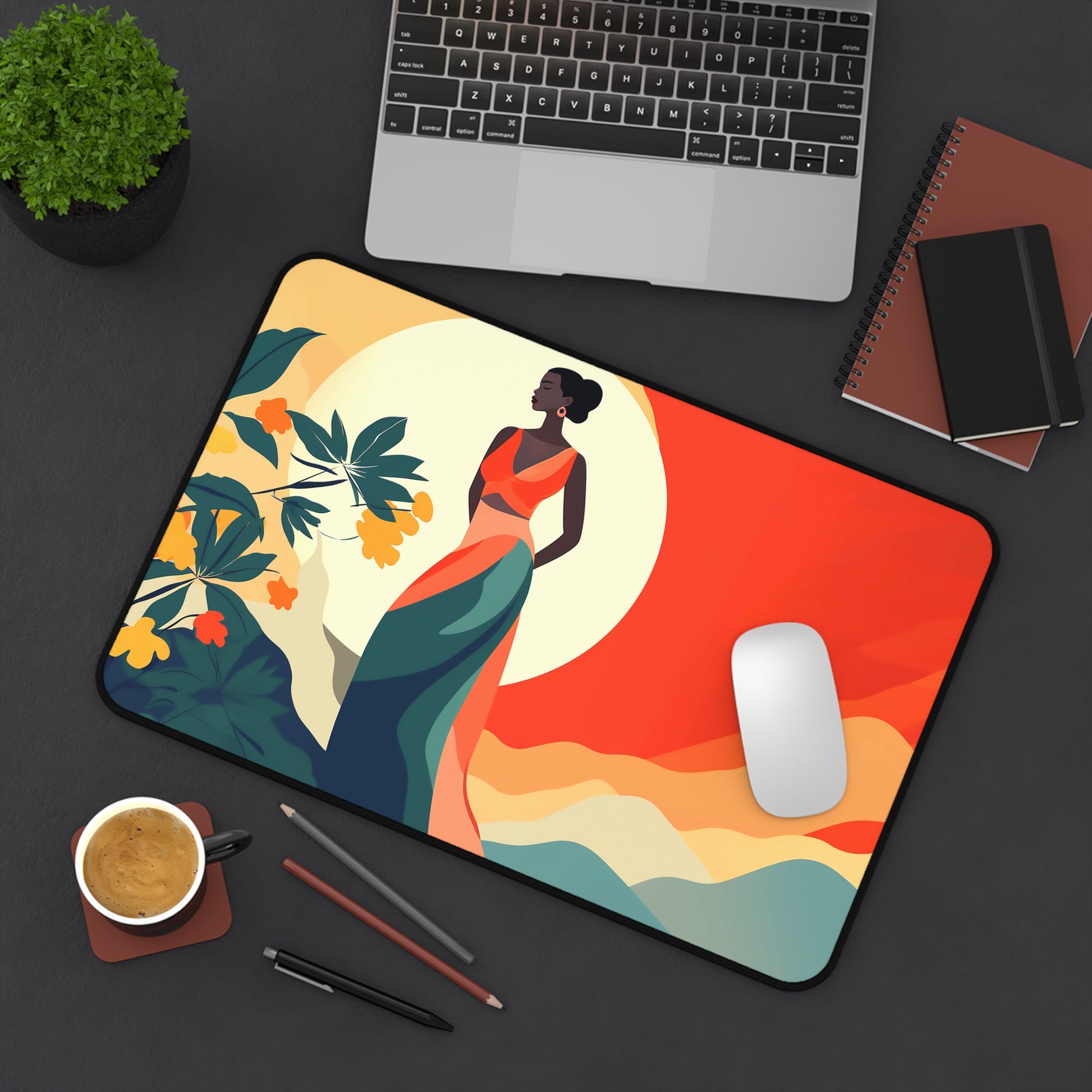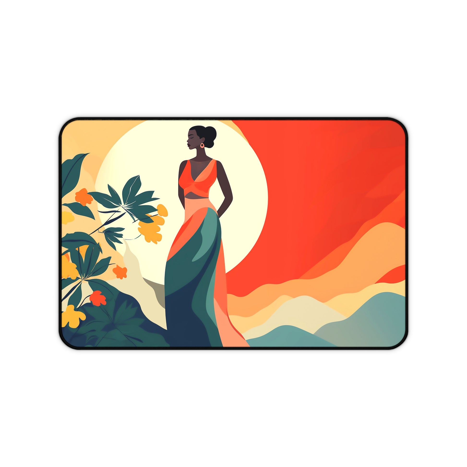 Boho Landscape African American Desk Mat, Gaming Mouse Pad, Long Mouse Pad, Gift for Black Woman, Black Girl Mouse Pad