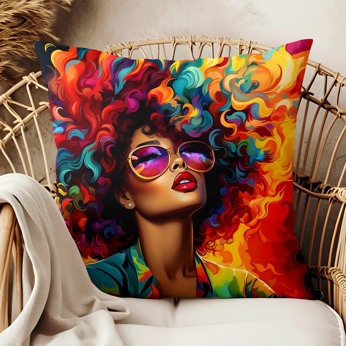 This African American pillow is a dream. Great for adding a pop of culture to any room. Room accents shouldn't be underrated. These beautiful indoor pillows in various sizes serve as statement pieces, creating a personalized environment.