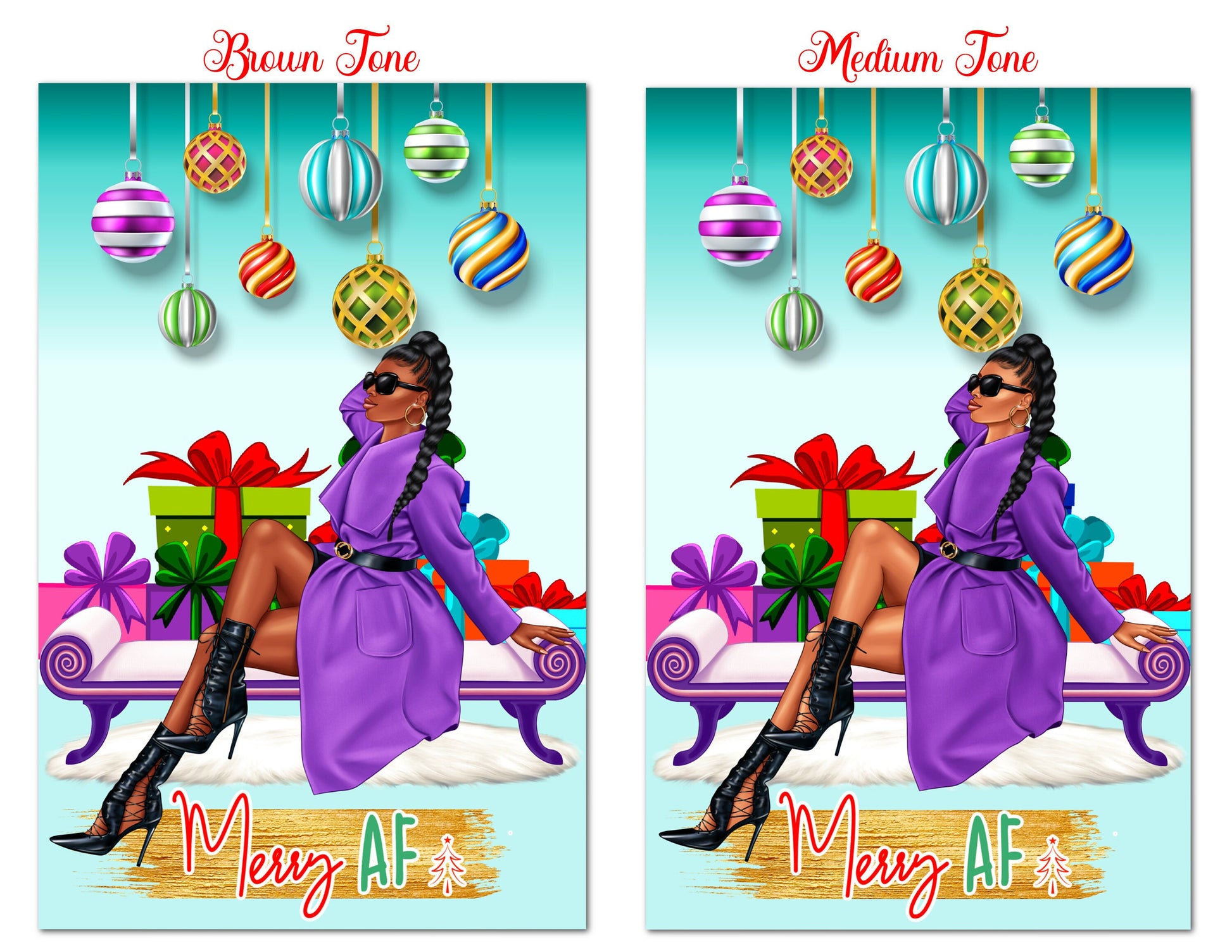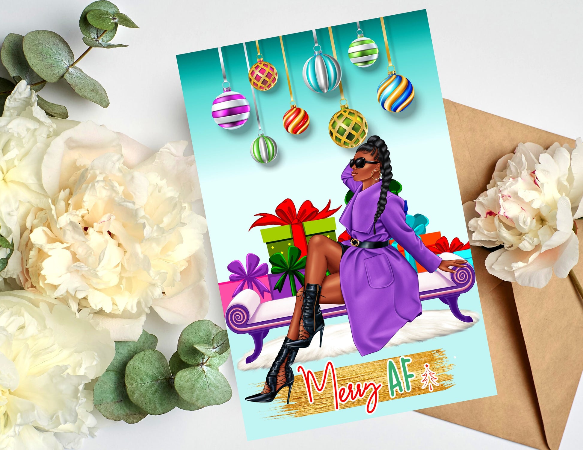 Say Merry Christmas without sacrificing style. Our African American greeting cards are a representation of who you are and how your feeling at the moment. Our cards are blank on the inside, so that you can write a personal message from the heart. Our greeting cards come as (1), (6) or (12) Count. If you would like different styles and tones; please message me the amount for each style and tone, and include your order# that you will receive when you check out. You will have the option to enter personalization information for most cards. Our cards are Full Size. The cards measure 5.5 x 8.5 folded, and 8.5 x 11 inches unfolded. Most of our cards are printed on gloss cardstock, and some are printed on linen cardstock. Our cards are great for Birthdays, Christmas, Anniversaries, Mother's Day, Father's Day, Graduation, Valentine's Day, and many more celebrations. Our greeting cards are great gifts to give to your Mother's, Father's, Brothers, Sisters, Children, Grandchildren, Grandparents,Friends and Co-workers. Give the gift of style and representation for that speacial event.