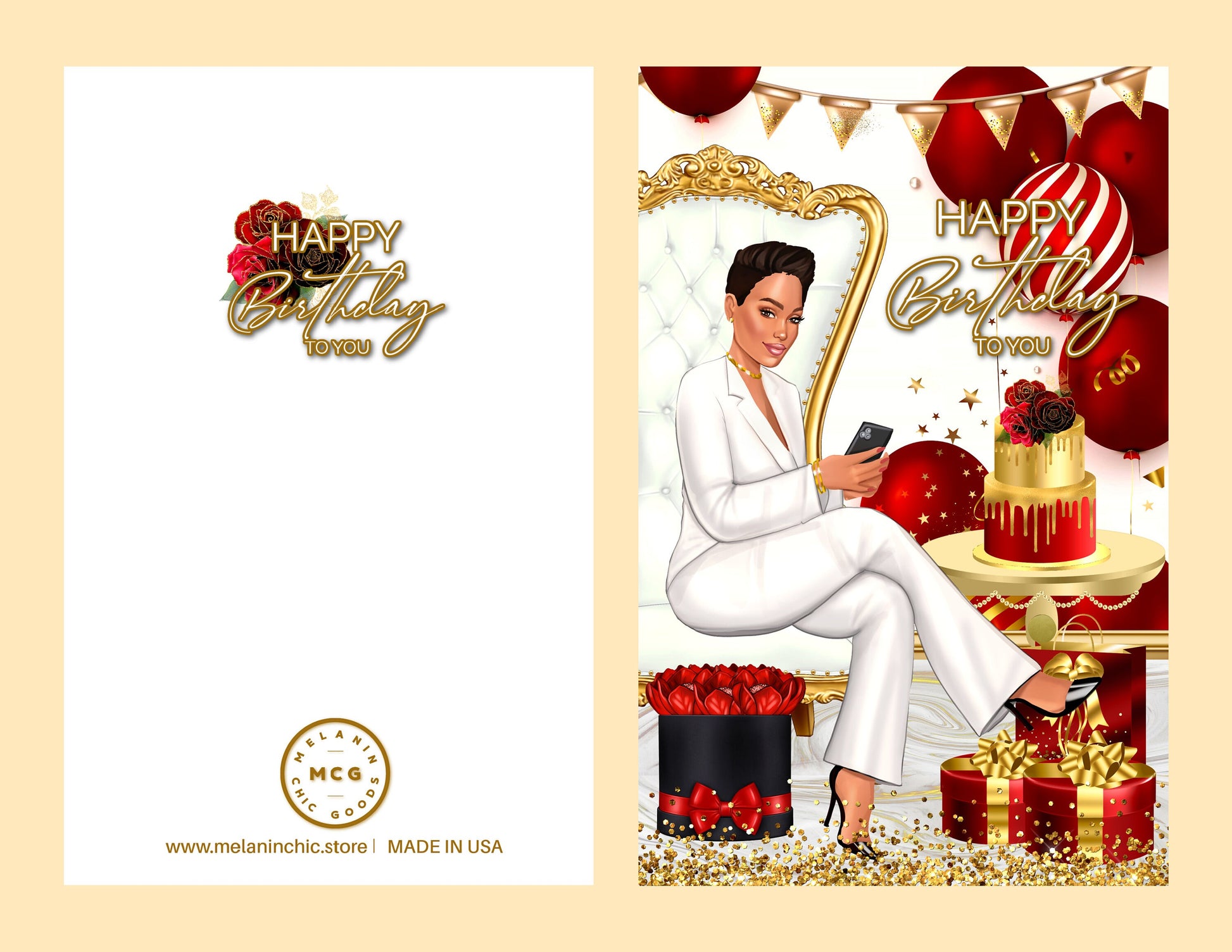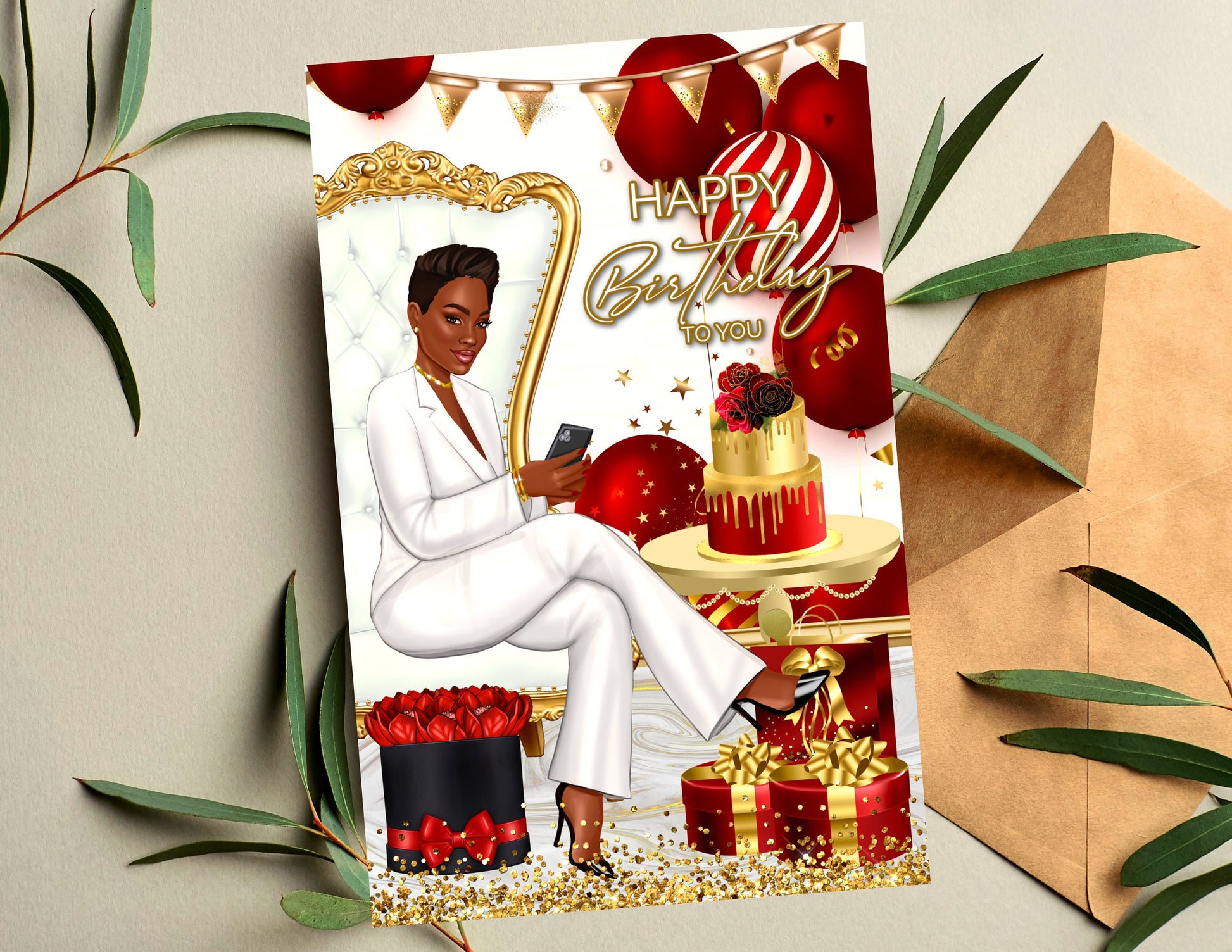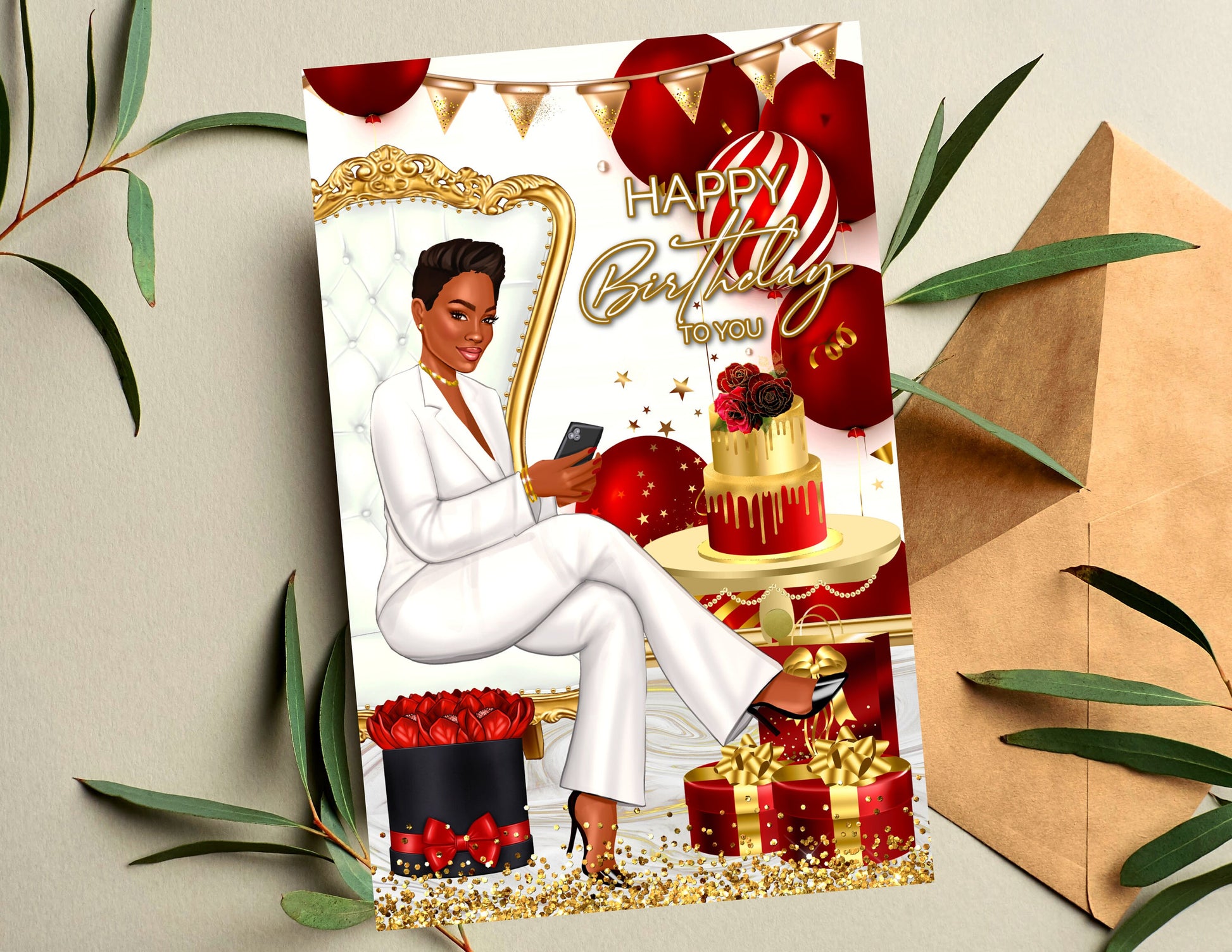 Say Happy Birthday without sacrificing style. Our African American greeting cards are a representation of who you are and how your feeling at the moment. Our cards are blank on the inside, so that you can write a personal message from the heart. Our greeting cards come as (1), (6) or (12) Count. If you would like different styles and tones; please message me the amount for each style and tone, and include your order# that you will receive when you check out. You will have the option to enter personalization information for most cards. Our cards are Full Size. The cards measure 5.5 x 8.5 folded, and 8.5 x 11 inches unfolded. Most of our cards are printed on gloss cardstock, and some are printed on linen cardstock. Our cards are great for Birthdays, Christmas, Anniversaries, Mother's Day, Father's Day, Graduation, Valentine's Day, and many more celebrations. Our greeting cards are great gifts to give to your Mother's, Father's, Brothers, Sisters, Children, Grandchildren, Grandparents,Friends and Co-workers. Give the gift of style and representation for that speacial event.